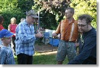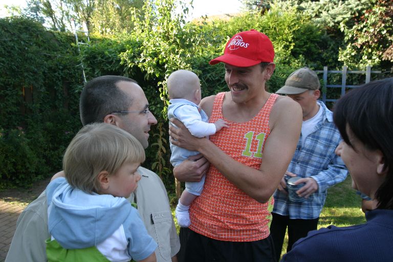 Wegen des Wetters fiel die Labbos-Carport-Feier in diesem Jahr quasi ins Wasser. Und auch die Teilnehmerzahl machte den Labbos diesmal einen Strich durch die Rechnung. Nachdem man sich in den letzten Jahren stets in eher kleinem Kreis unter dem Dach des Rümmerschen Carports zusammen setzte, war diesmal der Platz für die vielen anwesenden Labbos fast zu gering. Das schöne Wetter war dazu noch eine willkommene Einladung, sich völlig im Freien aufzuhalten, sodass aus der Carport- in kürzester Zeit (sieht man mal vom Essen ab) eine Garten-Feier wurde. Ansonsten gab's nicht viel Neues: Bier, Grillerei, eine nahezu einstimmige Entlastung des Kassenwarts und Bärbel, die wieder einmal später kam dafür wieder etwas früher ging. Hier ein paar Eindrücke vom Abend ...